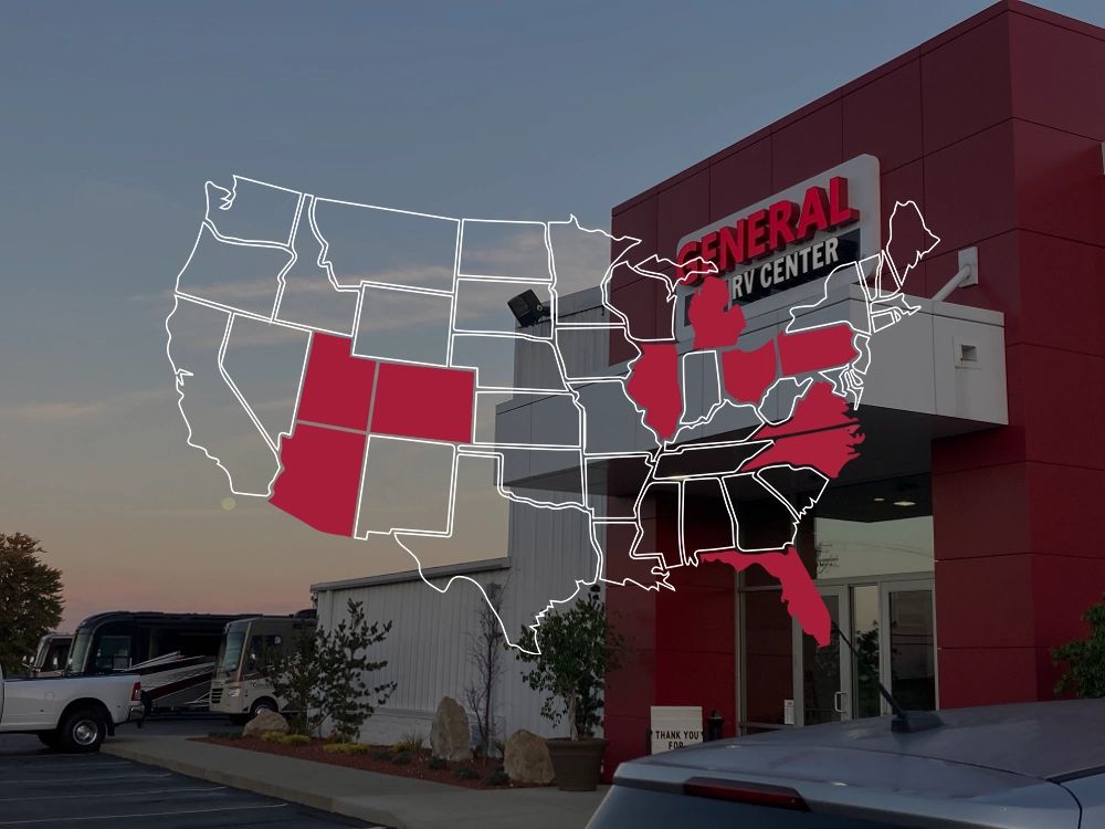 General RV Supercenters are conveniently located in Michigan, Florida, Ohio, Illinois, Virginia, Pennsylvania, North Carolina, Utah, Colorado, and Arizona. If you’re searching for a new RV, our experts are ready to answer all your questions and help find the RV of your dreams. Find a Supercenter Near You >